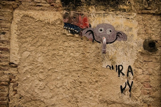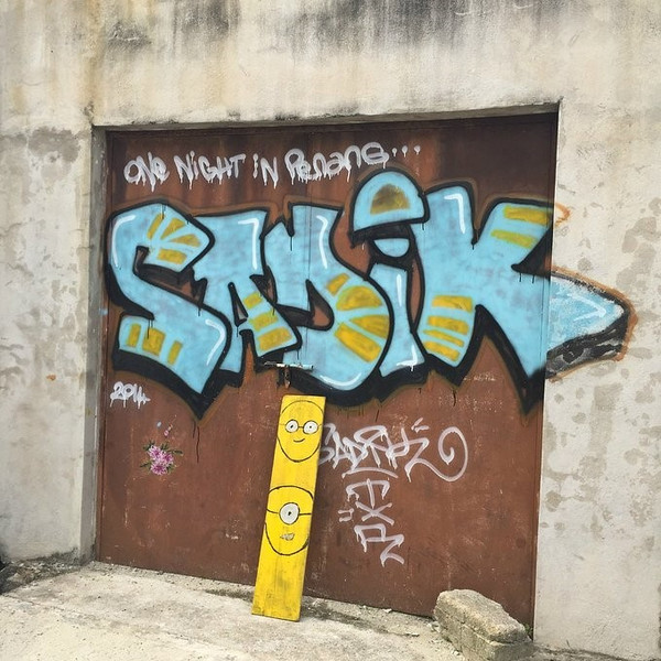路口不起眼的柱子上也有奇怪的涂鸦。