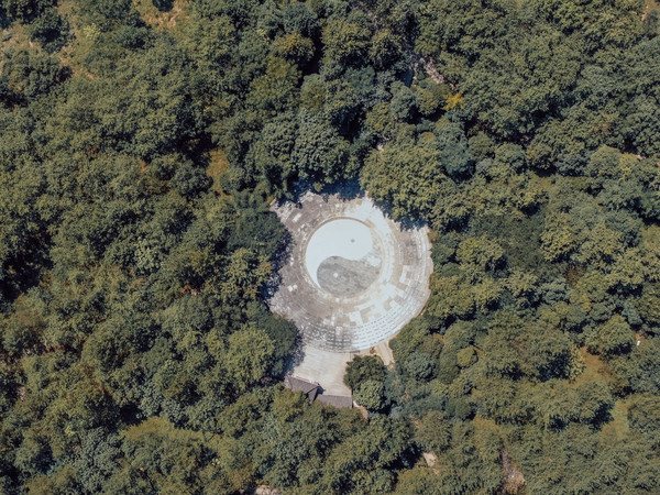 中心位置有一个太极广场,可以容纳很多人。在太极广场上也能够看到鼎湖峰。唐代白居易游仙都时就曾留诗咏叹:“黄帝旌旗去不回,片云孤石独崔嵬。有时风激鼎湖浪,散作晴天雨点来。