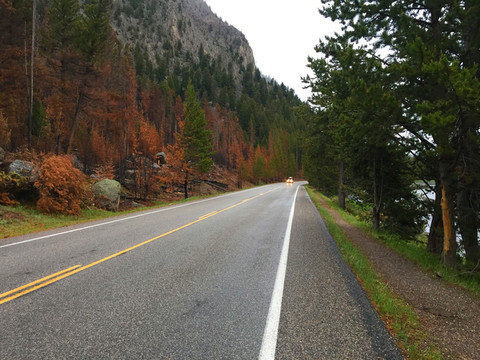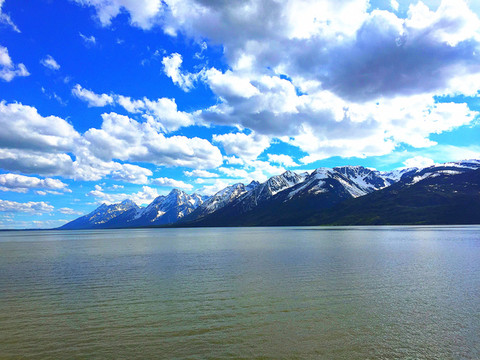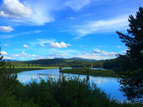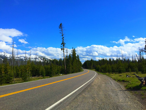 从黄石湖出发,出黄石公园南门直接进入大提顿国家公园,进入大提顿公园的路非常好,路两边景色迤逦,一会是清澈的湖泊,一会是高耸的雪山,一会是苍翠的松林,一会是盛放的野花.........。大提顿国家公园景色其实也非常漂亮,只因为它紧邻黄石公园,所以其在游客心目中地位相对于黄石公园逊色不少。