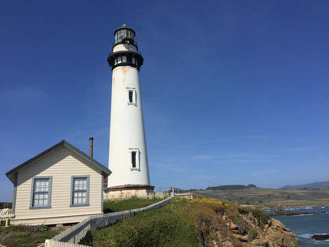 鸽点灯塔(Pigeon Point Lighthouse)是一号公路上我们游览的第一个景点。该灯塔是加州州立历史地标,建立在1871年,有一百四十多年历史了,至今仍在被美国海岸警备队使用着。这个灯塔也是美国最高的灯塔之一,加州海岸线上最为知名的摄影地之一。