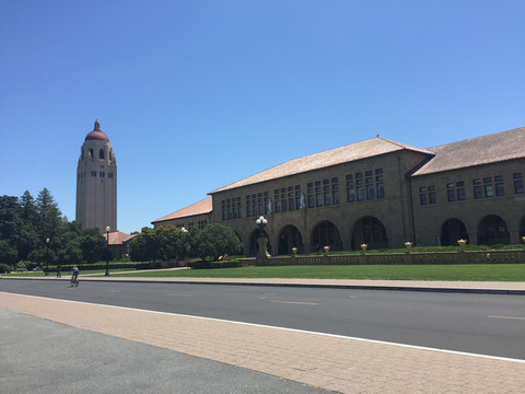 6月5号,天气晴朗,天空被白云霸占了一半。早上9点,我们来到酒店对面的租车行取车(当时预订希尔顿酒店就是考虑了取车方便),经过了半个小时排队等候,终于坐上了霸气的“大白”,向着今天第一个目的地——斯坦福大学出发。