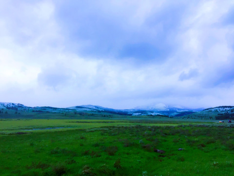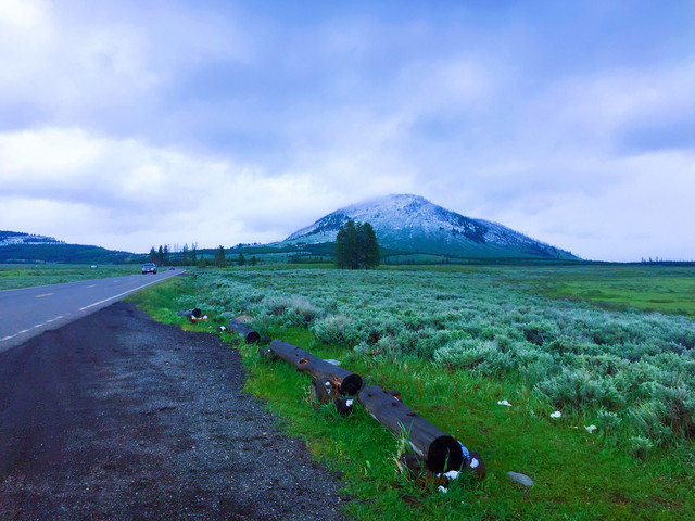 参观完圣殿广场,又去膜拜了一下犹他州议会大厦,我们调转车头向西黄石方向奔去。车在高速上飞奔,路两边的景色也变得丰富起来,远处是巍峨的雪山,两边是大片的草地和森林,不过车外的温度也急剧下降,虽然是酷夏,但我们不得不穿上厚外套。