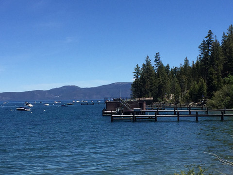休息一会继续下山,来到太浩湖。太浩湖(Lake Tahoe),位于美国加利福尼亚州和内华达州边界上的湖泊,北美最大的高山湖泊,深501米,是美国第二深的湖泊。太浩湖四周由山峰环抱,湖水澄净湛蓝,天堂一般的高山湖,美的有点不太不真实,太浩湖被马克·吐温先生誉为全世界最美的地方之一。正如马克吐温说:“如果想呼吸天使的空气,那么去太浩湖吧。一边触摸天空,一边触摸心灵。”