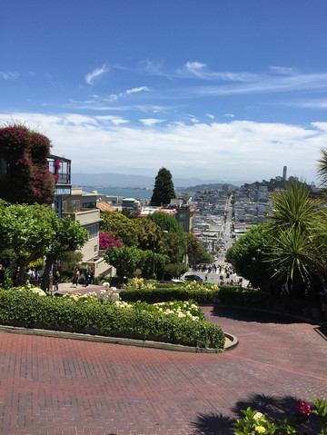 6月3日,阳光明媚,天空透蓝,虽然旧金山正是盛夏,但太平洋的海风还是很凉。正如马克吐温所说:“我遇到过最寒冷的冬天,是旧金山的夏天。” 武装上长衣长裤,向着第一个景点——九曲花街出发。