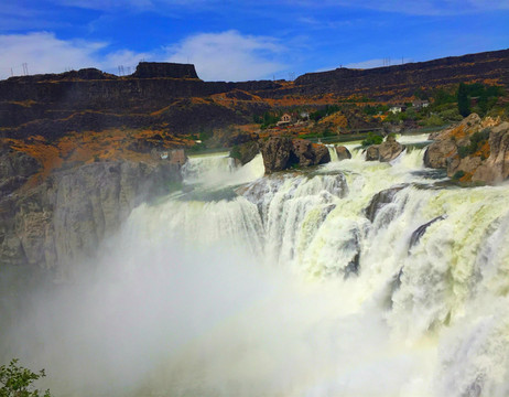 气势宏伟的肖肖尼瀑布,坐落于爱达荷州特温福尔斯的蛇河之上,有时被人们称之为“西部的尼亚加拉瀑布”,因为它有着和尼加拉瀑布一样的壮观气势,为美国最上镜的瀑布之一,被列为世界十大瀑布。肖肖尼瀑布高64.7米,比尼亚加拉瀑布还要高出14米,宽300多米,它是特温福尔斯,甚至是爱达荷州乃至美国必游景点之一。