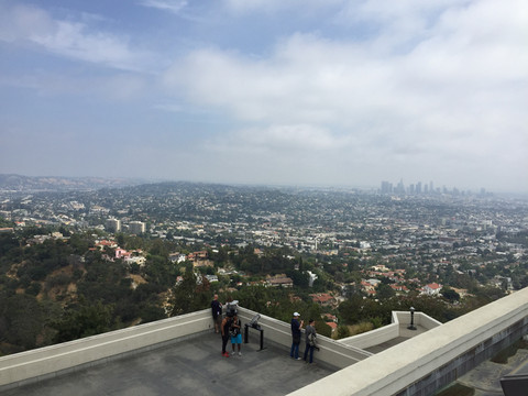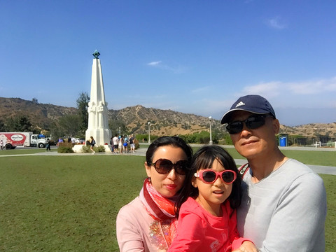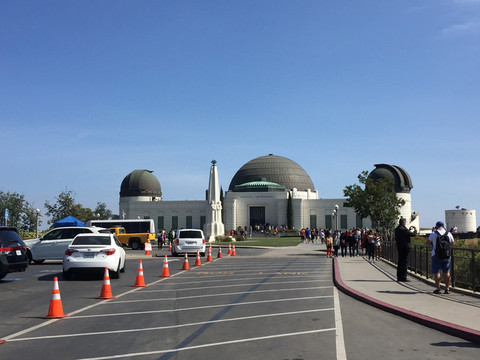 离开星光大道,我们开车来到格里菲斯天文台(Griffith Observatory),这是一个小朋友喜爱的游览场所。格里菲斯天文台是世界著名的天文台之一,位于洛杉矶西北方向的山上,与好莱坞Hollywood Hills遥遥相对。天文台里面不仅有丰富的天文知识介绍,还有各种天文设备及模型。走进天文台,荳妞非常高兴,一会儿看看日全食月全食是怎么形成的,一会儿又摸摸八大行星的各个模型,荳妞看的津津有味,还不时给荳爸荳妈讲讲白天、黑夜是怎么出现的。天文台地处山顶,这里也是洛杉矶最佳观景胜地。在这里可以远眺对面山上的白色的Hollywood字样,还可以俯瞰整个整个洛杉矶“大农村”。