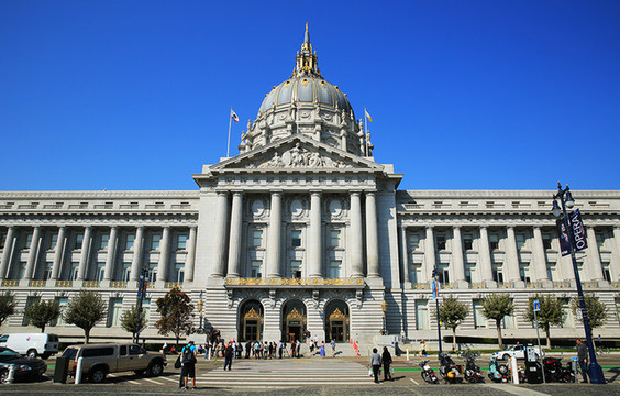 参观完教堂,步行15分钟分钟就来到大名鼎鼎的市政厅。说它大名鼎鼎,是因为旧金山市政厅被公认为全美最漂亮的公共建筑之一,高大的金色穹顶,高度超过了美国国会大厦。据说,旧金山市政厅1915年重建时,预算高达3亿美金天文数,当时遭到全体是市民反对,为了说服市民,官员许诺市政厅建好后,市民可以随便参观。
