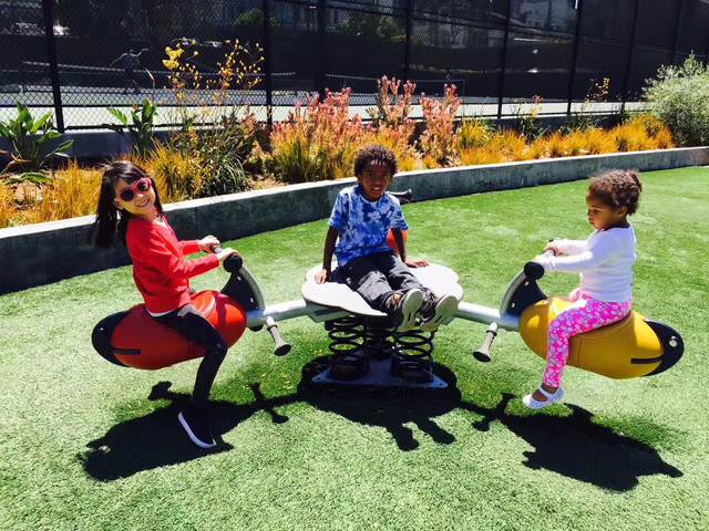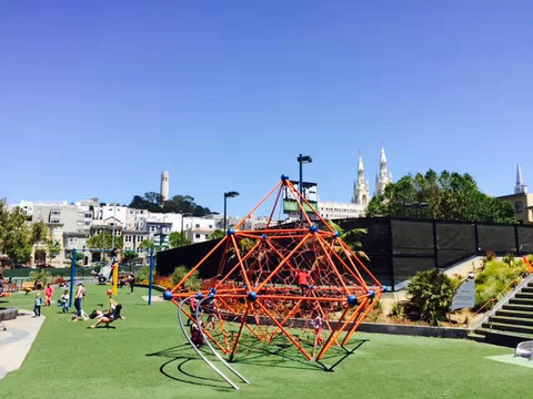 游览完九曲花街,步行几分钟就到了North beach,其实这里并不是一处海滩,而是所谓的意大利城,这里有欧洲浪漫风情的街头咖啡店、餐厅,我们边走边欣赏街道风光。这是前面出现了一处社区公园,全是小朋友玩的设施,小荳两眼放光,立马冲进场地嗨皮起来。荳妞在这里成了名副其实的歪果仁,不过小荳并不怯场,中国人民和美国人民很快打成一片。