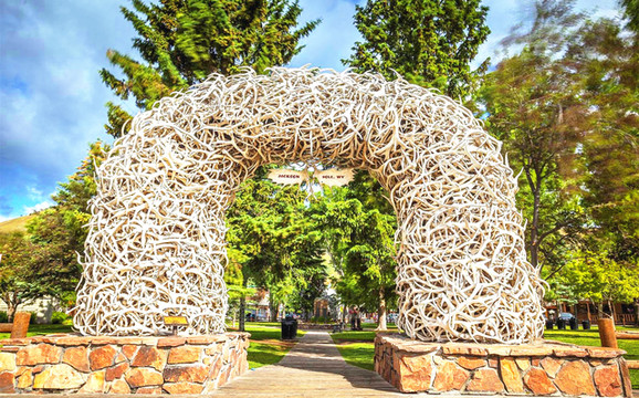 欣赏了一会优美的风景,太阳也慢慢向西边下沉,由于时间关系,我们需要继续赶路,今天的目的地——爱达荷福尔斯。从大提顿公园出来,来到杰克逊小镇,这是一个非常有西部特色的小镇,以牛仔文化闻名,有著名的鹿角公园,有当年牛仔们活动的痕迹,遗憾我们不能停留。