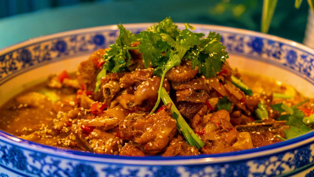 作为出名的江景悬崖餐厅,怎么能没有“铜锣”开头的招牌菜呢?铜锣吊烧鸡,悬崖餐厅招牌菜之一,是用鸡肉搭配菌菇,但这样你们会不会觉得是“小鸡炖蘑菇”?那就大错而错了!搭配重庆最爱的辣椒提味,还有菌菇的清香,再用经典的“郫县豆瓣酱”的独特的浓郁口感,