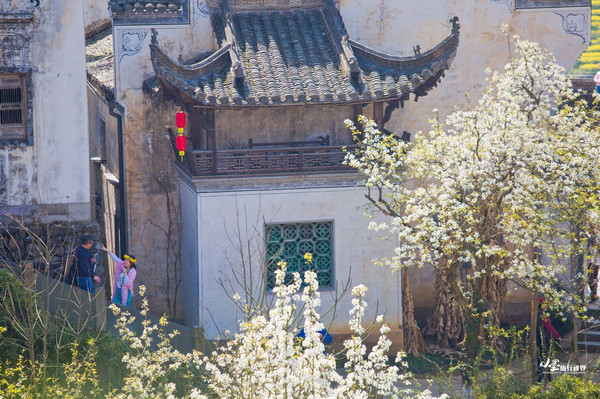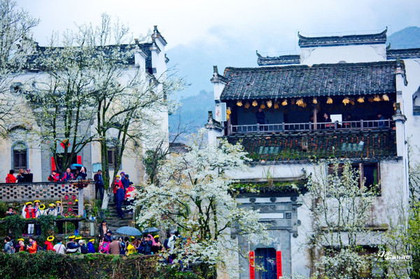 春风里的 篁岭村 落古街上,最美的还是那点点梨花与黛瓦白墙相映成趣。“风风雨雨梨花,窄索帘栊,巧小窗纱。”恍惚间有一种浅浅淡淡的情绪随烟雨四下弥漫着,却不似笙鹤翁的失意寥落,这就是 江南春天里隔着前尘的惆怅吧。