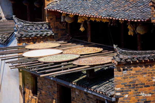 除了秋季,春天的油菜花季是篁岭的另一个最佳旅游时节,若逢天气正好,晒架上也会摆出些许农作物晾晒。