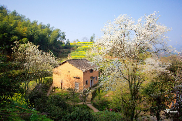 除了村外的油菜花,村内也是百花争艳,房前屋后,街道和溪水两旁,桃花、梨花、杏花依次绽放,清风漫舞,蝶绕 花溪 ,如雪的白嫩间杂着胭脂的红,又被阳光映射出妩媚的光影。不妨留上半日空暇,在此放慢脚步,去欣赏沿途古朴的民居和春色,每一株 花都 是一个蓬勃的生命,从花开到花落,犹如我们在尘世绽放的精彩人生。