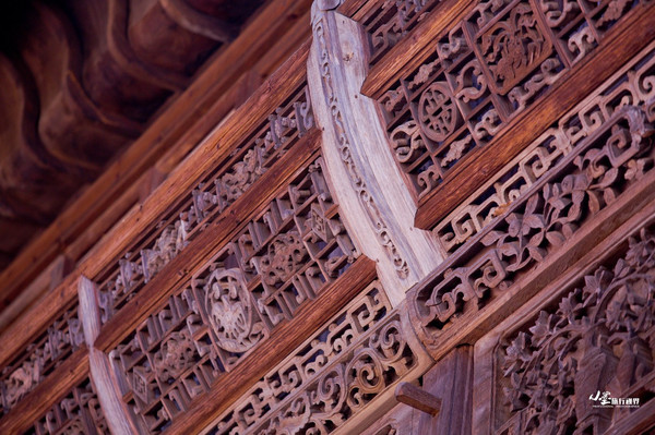 入眼青红,小玲珑、飞檐度云微湿。绣槛展春,金屋宽花,谁管采菱波狭。篁岭的徽派建筑,最不缺的就是飞檐雕龙和镂空花窗的细节。远观其四角飞檐高高翘起,或展翅欲飞,或飘忽若梦,动静之中却有圆润的雅致。幽梦一帘花影深,当你推开雕花的窗户眺望远方的山影,窗里窗外都是风景。