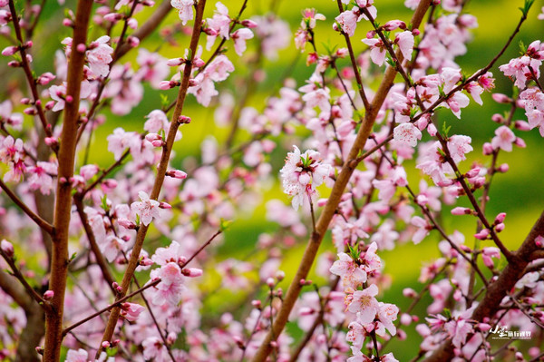 刚好路边的桃花正值盛开的季节,却是让我想起半阙点绛唇: