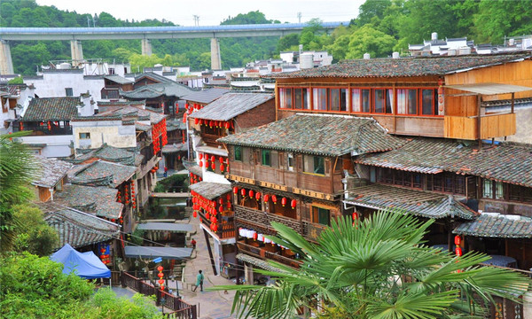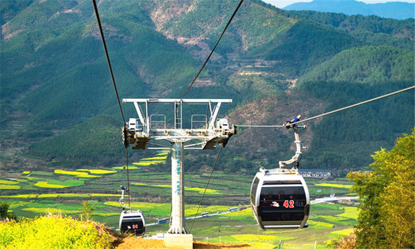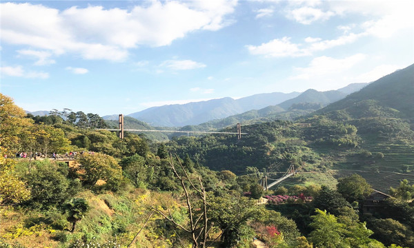 篁岭古村独特的旅游项目,索桥、滑过溜索、高空索道,俯瞰独特的晒秋奇观。