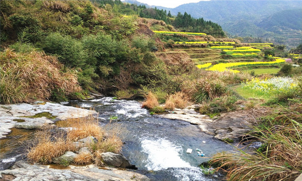彩虹桥周围景色优美,青山如黛,碧水澄清,坐在这里稍作休憩,浏览四周风光,会让人深深体验到婺源之美。
