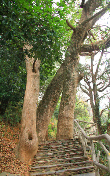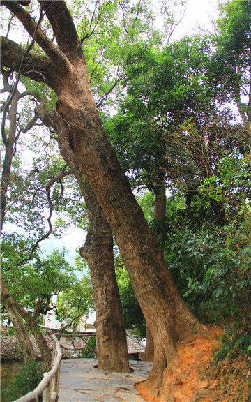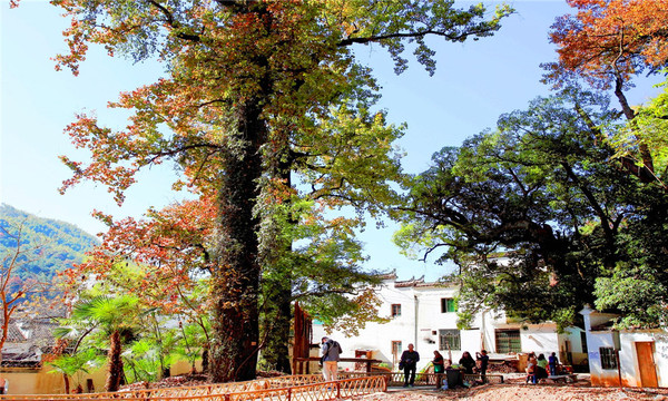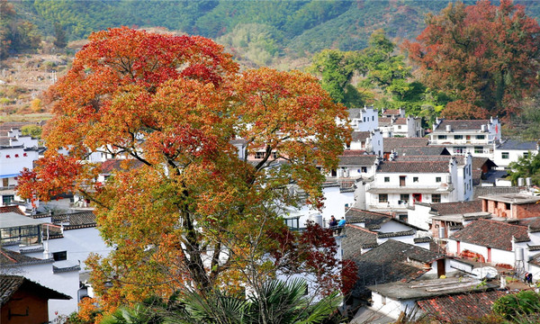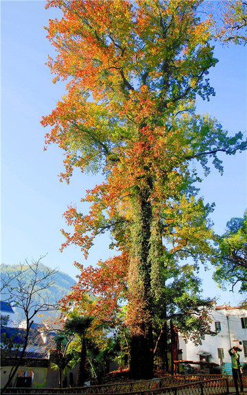 石城村最让人惊叹的就是这里的百来棵枫树,每棵树高都在35米以上,远远超过村里的高矮屋顶,和巨大而且笔直向上的树冠相比,黑瓦白墙简直就是玩具屋子。