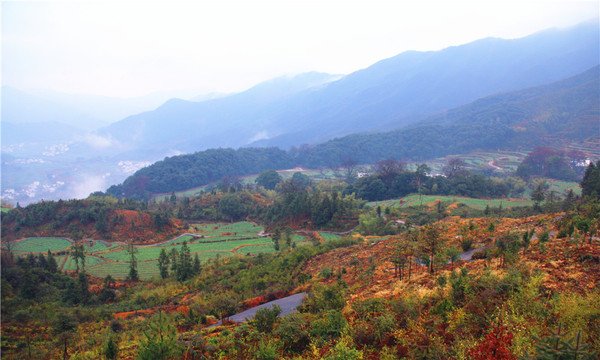 沿途一路的山山水水,山水相连,连绵起伏。山腰盘旋的那曲折蜿蜒的公路如缕缕飘带缠绕在那青山之中,成为一道独特亮丽的风景。朦胧的远山,笼罩着一层轻纱,影影绰绰,在飘渺的云烟中忽远忽近,若即若离,像是睡意未醒的仙女,披着蝉翼般的薄纱,脉脉含情,凝眸不语。看到此场景,只想感慨一句:“此景只应天上有,人间能得几回闻
