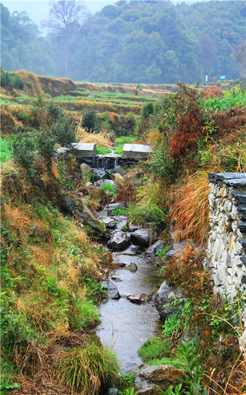 菊径村建于宋代,整个村庄布局独特,文化底蕴深厚,是个典型的山环水绕型村庄,四周高山环绕,一条小溪环绕整个村庄,符合中国的八卦“后山前水”设计,被誉为“中国最圆的村庄”,犹如世外桃源。