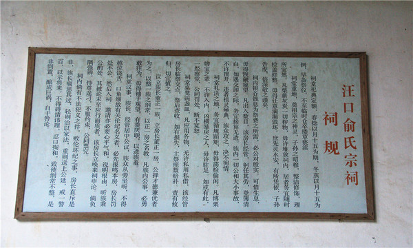 汪口因碧水汪汪而得名,宋大观三年(1110)由徙婺源九代孙朝议大夫俞杲建村。