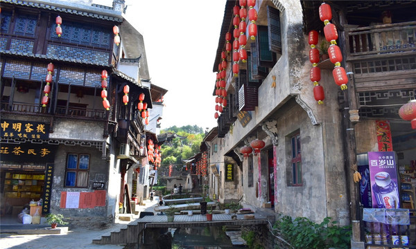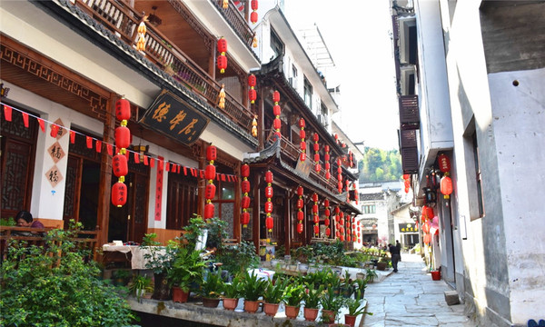 篁岭因"晒秋"闻名遐迩,村落"天街"似玉带将经典古建串接,徽式商铺林立,前店后坊,一幅流动的缩写版"清明上河图"。