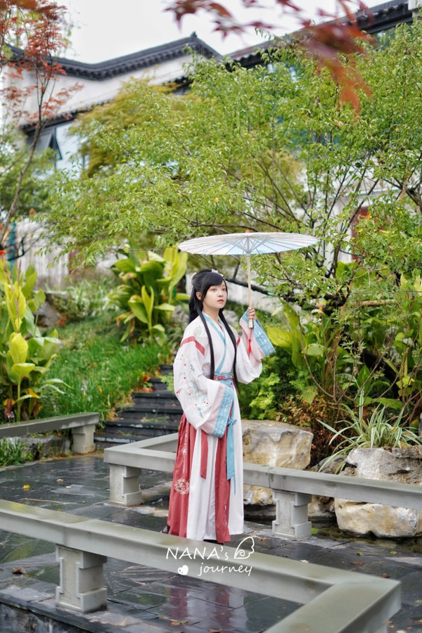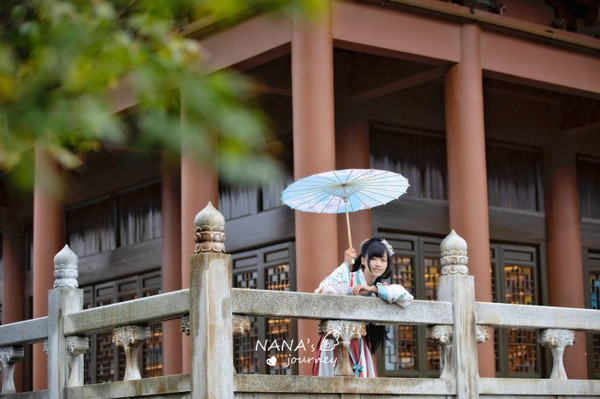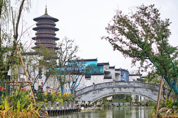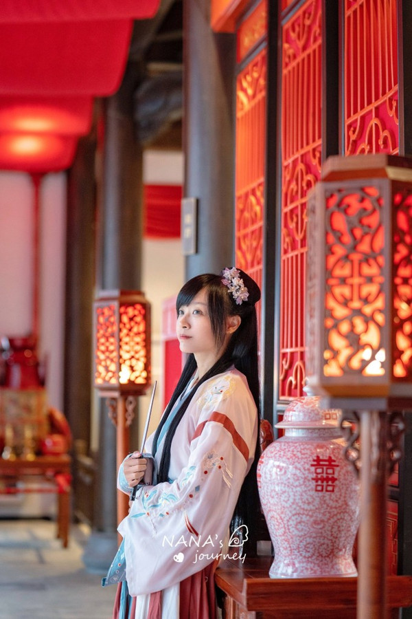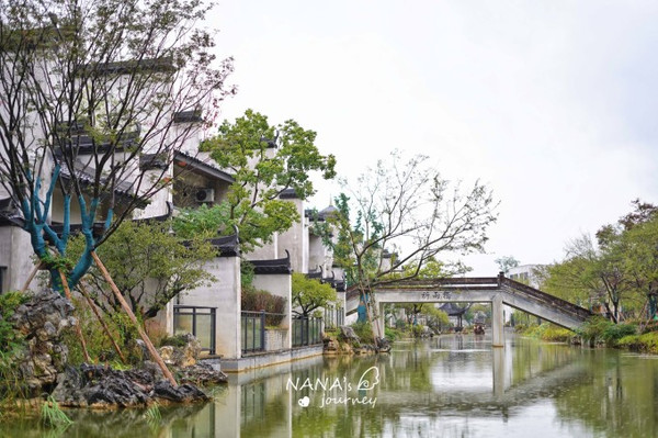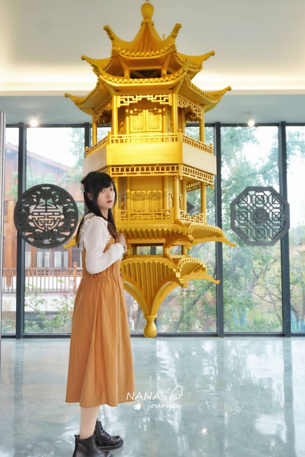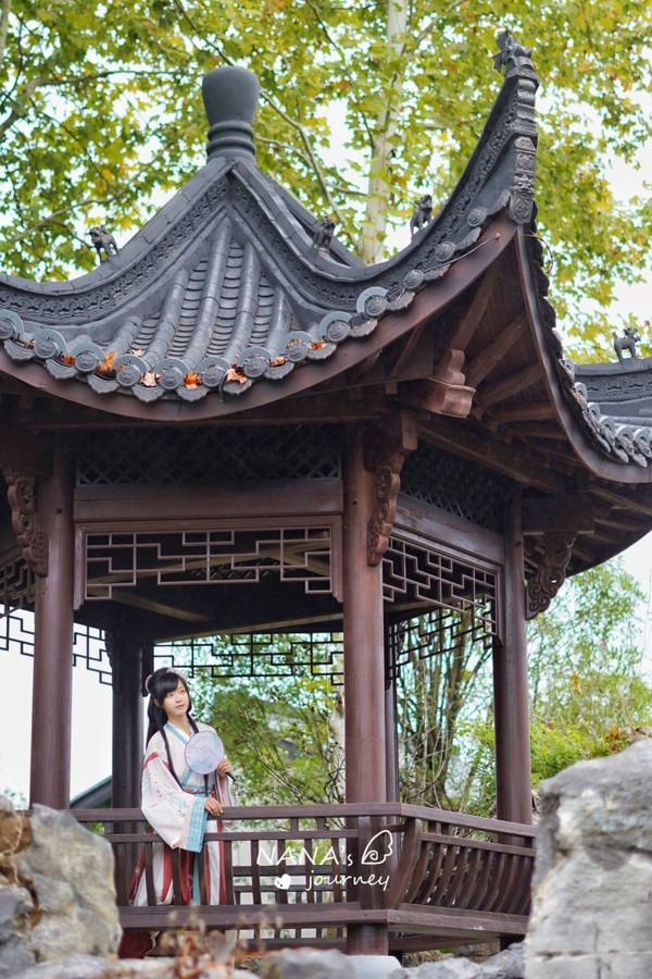如果换了汉服,也建议回到酒店附近采景,这里亭阁河流长廊,都是很适合开启这场穿越之旅的地方。