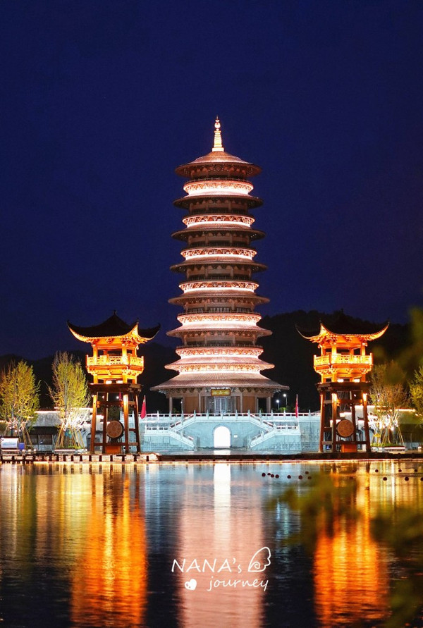 从五显堂看回抱玉塔,又是另一种模样,湖光倒映着傩舞广场的夜景,有一瞬间,让我仿佛做梦了一般。