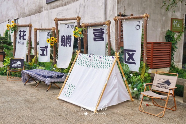 婺女洲度假区是综合型度假区,除了徽派建筑的街道河流,整个景区内有不少露营的元素在,但最主要的露营地便是大草坪的露营专区。