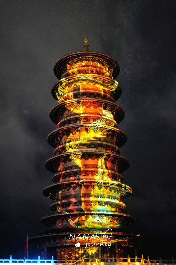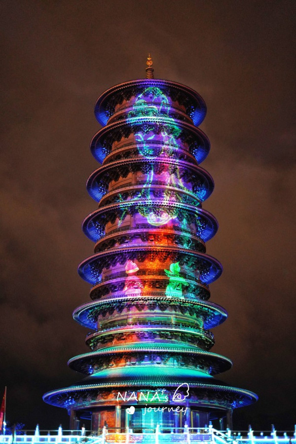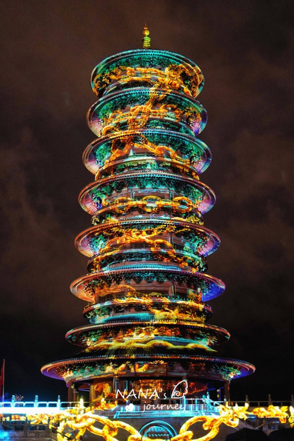 当五彩的光在塔上绘出不同的画面的时候,一幕幕故事精彩的上演,我们构想着脑中的故事情节,回味无穷。