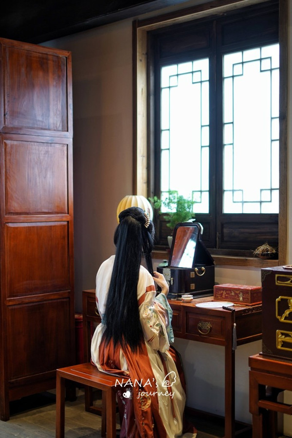 想真真深度体验一个地方之美,那就入戏吧,来一场婺女洲的穿越之旅。园中有汉服店铺可租借汉服,还有妆发,给懒人一个变美变仙的机会。最重要的是,婺女洲也太适合拍汉服了,随便一个角度都能拍出写真大片呀!
