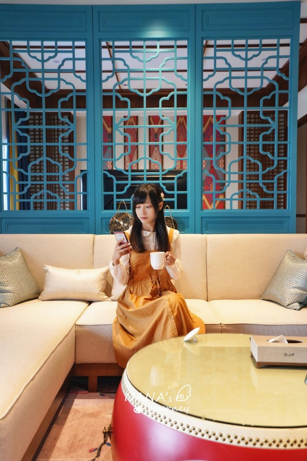 没想到房间的屏风和国风落地灯,组成了一个很好的拍照点,特别喜欢这个有爱的角落。