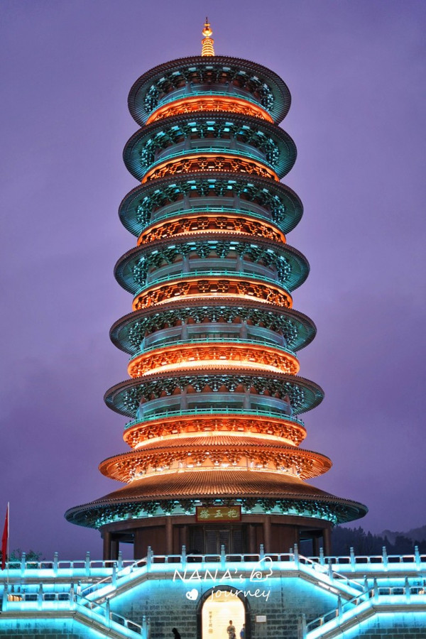 抱玉塔也缤纷了起来,冷暖交织的灯光色彩,让塔有着稳重而淡雅的气息。塔的内部也能参观,是一色的纯净之白,仿佛是另外一个世界~