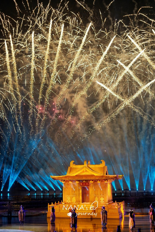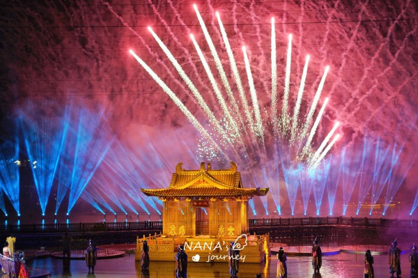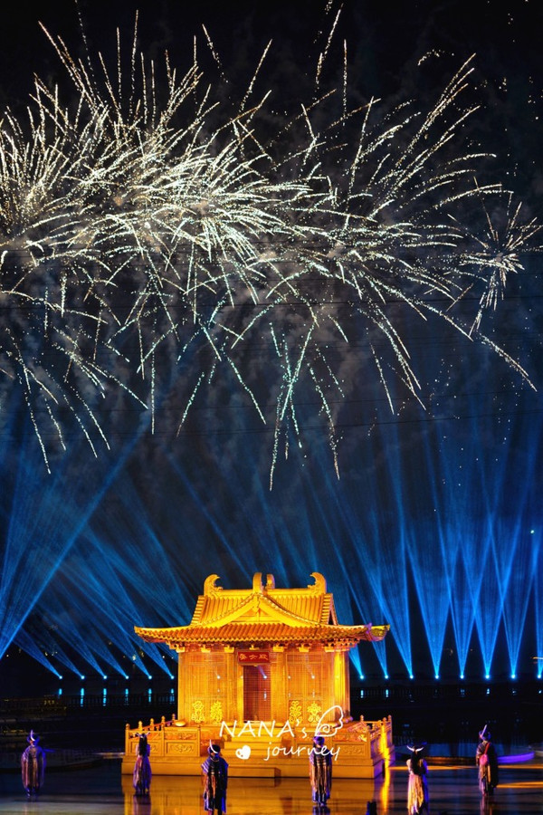 当我们都以为要结束的时候,一场精彩的烟花秀在表演的湖面上开始,给不常能看到烟花的我们,大大的惊喜,各种缤纷的烟花在空中绽放,暖了这初秋的夜,也绽放进了我们的心里!