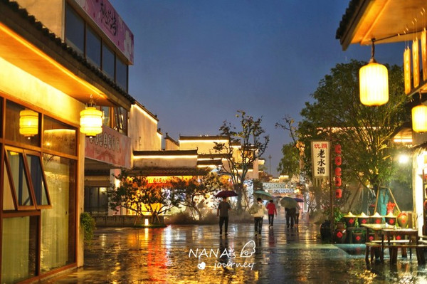 这一刻,我爱上了婺女洲之夜,徜徉在徽式街道,闻着徽派美食的香气,打着雨伞,听着淅淅沥沥的雨声,不失为一种秋日的独有浪漫。