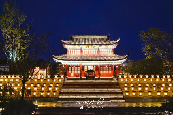 在五显湖的另一侧岸边,有着另一处绝美夜景地——五显堂,设计灯光的人我堪称为大神,古朴的中式殿堂,在灯光的交织中呈现了如天宫中的美景,让我们连连称赞不已!虽然步行需十五分钟,但千万不要错过了~
