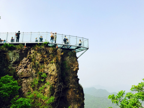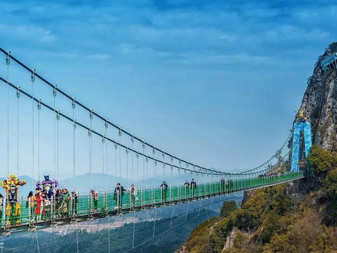 (全新更换超大块玻璃更大、更透明、更刺激!走在超大块、超透明的玻璃桥上,俯视脚下即是悬崖美景,是惊心动魄的挑战!)