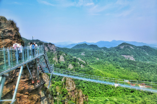 马仁奇峰“绝壁天梯玻璃栈道”位于景区雄伟的主峰悬崖峭壁之上,栈道为全透明双层夹胶玻璃组建,单点承重力1000斤,长200米,垂直高度180米,宛如一条巨龙,盘桓在峭壁之上,欲腾云冲天。