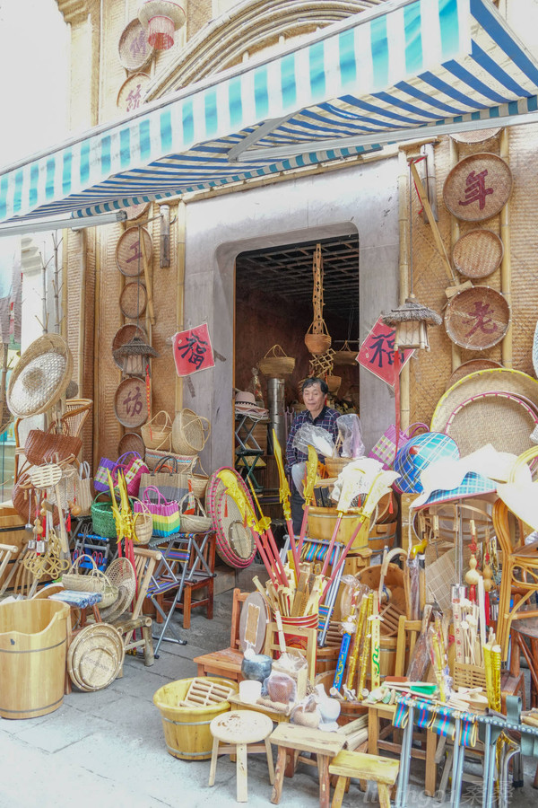 古城里还有很多特色店铺,比如竹篾铺,据说很多摄影大师都去过这家店铺取景,因为这里的竹编制品实在是细巧精致,很是吸引眼球啊。