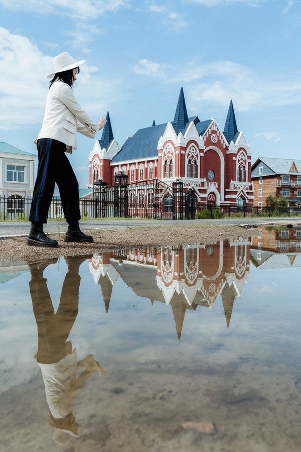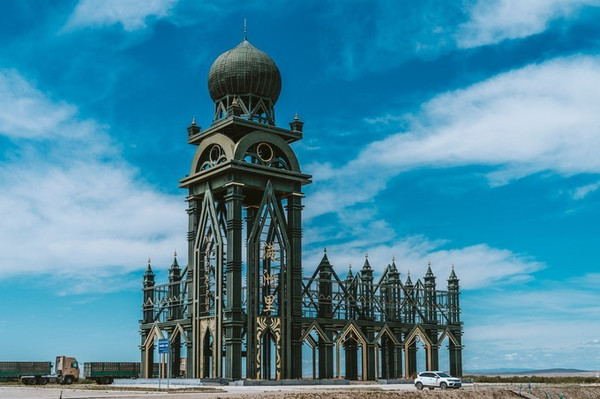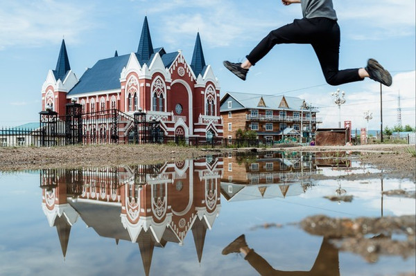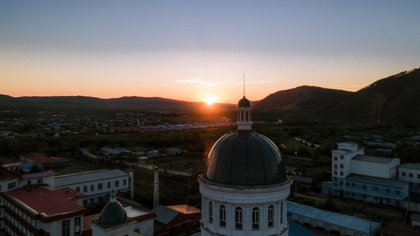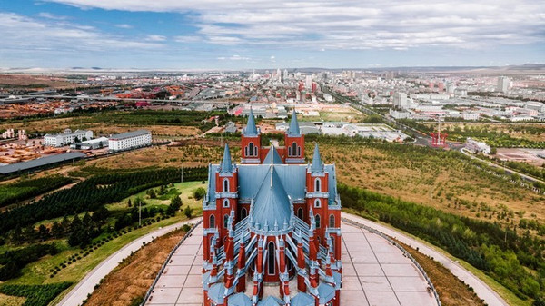 城里面玩够了,还能跑到市区东侧外的一座山坡上去看日落,山顶修了一座庄重典雅的哥特式风格的建筑——婚礼宫,尖塔直冲云霄,外观红蓝搭配很亮丽。这里其实也是一座大教堂,很多新人在此完成了王子和公主的童话梦。由于这里位置高,视野开阔, 满洲里 市貌便可尽收眼底。无论看夕阳还是夜景,都能尽收整个 满洲里 。