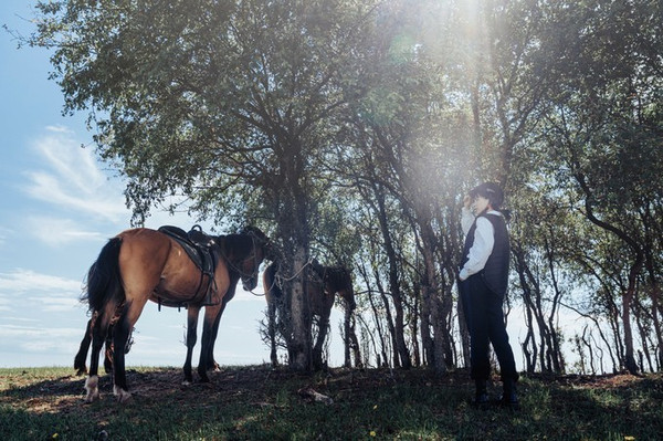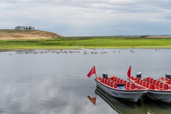 湿地公园最地道的玩法是坐着小船,穿过芦苇荡,去探寻湿地中央的界碑。我们正想去试一试,巴图接到电话,说巴尔虎的马术表演当天正好开始恢复营业,相比坐船,我们更倾向观看后者,那首“套马的汉子你威武雄壮,飞驰的骏马像疾风一样”早已植入我心。