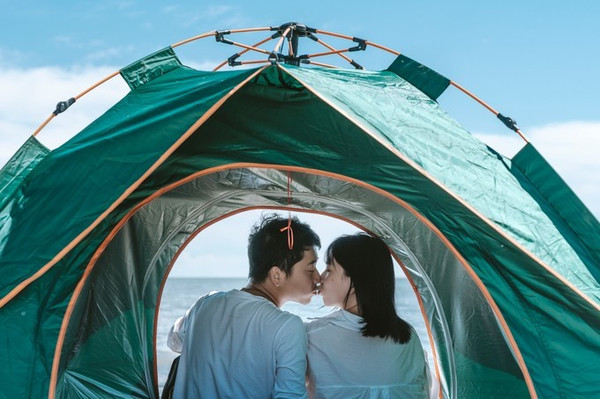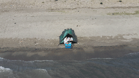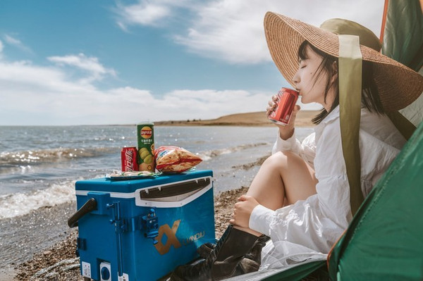 我们来到湖边正好是饭点,我们买了一堆小零食,搭了一顶绿油油的帐篷,印证了那句“要想生活过得去,身上总得“带点绿”。