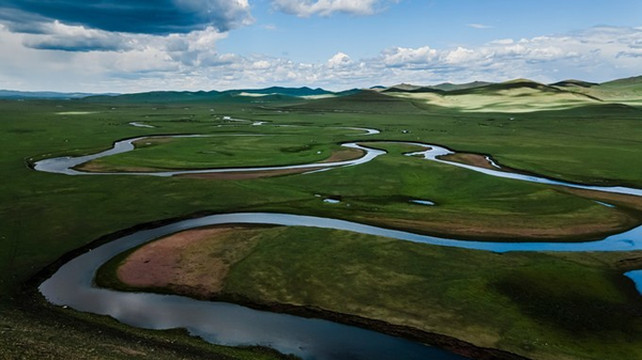 在草原开车,没有那么多讲究,大部分时间跟着车辙印子跑就好,看到美丽的山头,便一个转向勇往直上,一路登顶,而最高处见的,一定少不了老舍先生笔下的天下第一 曲水 ——莫日格勒河。