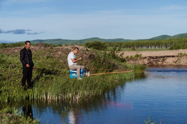 巴图习惯性“恐吓”我们,我一听知道他又要带我们去玩什么地道的体验。因为疫情原因,生意也不繁忙,巴图拽着民宿老板力哥,我们几个一同前往了 恩和 周边的水塘,开启了钓鱼大赛。