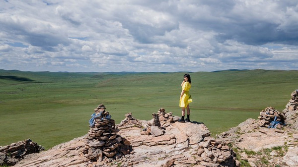 草原大多都是阵雨,来也匆匆,去也冲冲。站在被暴雨洗礼后的石头山顶。环望360度的翠绿,还有那些伸手仿佛便可触摸到的棉花糖云朵。