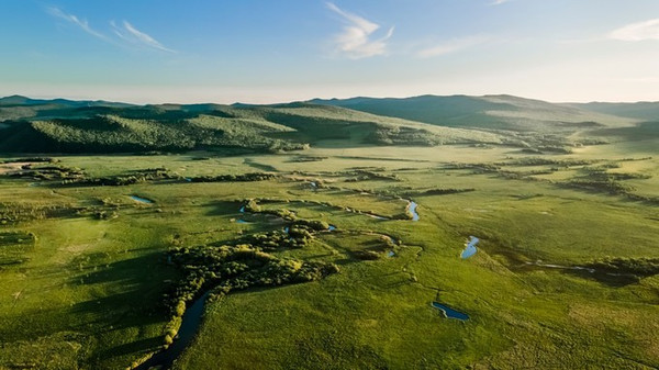 莫日格勒河如一条柔美的蓝色绸带,灵动挥洒,流经之处,青草肥美,便孕育出草原三宝——牛羊马。