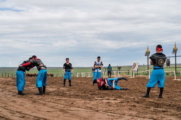博克(摔跤)是 蒙古 族人民最隆重的体育活动之一,700多年前就成为那达慕大会男子比赛项目。在巴尔虎 蒙古 部落,每天都会有小型博克表演,一般由8位博克手捉对较量,胜者晋级,败者淘汰,最后决出冠军,冠军会被授予各种称号。