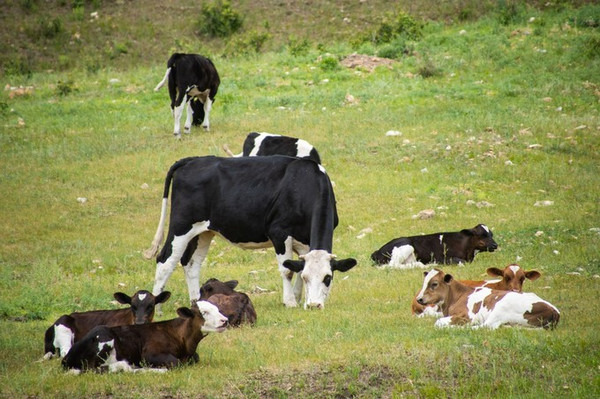 小牛们悠闲地躺在妈妈身旁,画面也是很温馨呢。