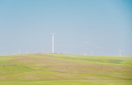 我一直觉得 呼伦贝尔 路边的风景比景区的还要美,白色的大风车散落在山间,像一幅幅漫画一般。