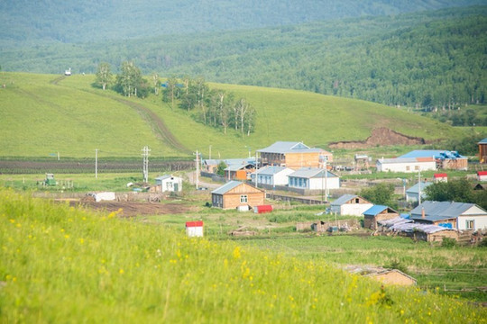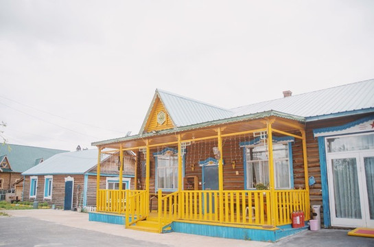 恩河住着许多 俄罗斯 族人,这个小镇上的房子大多都是俄式的小木屋,蕾丝花边装点的很有特色。
